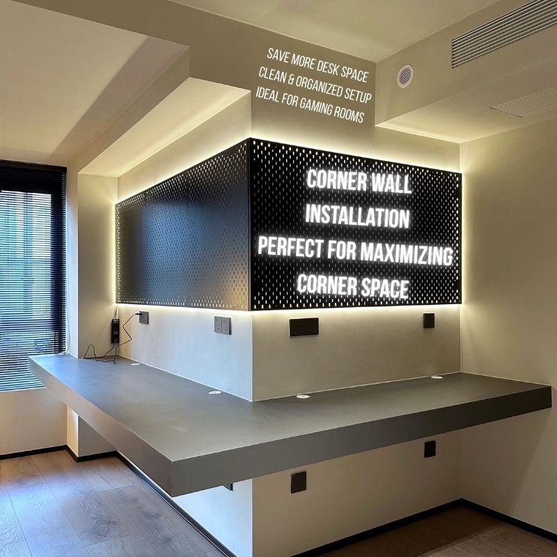 Fits most standard pegboard hooks and accessories. Perfect for gaming rooms, streaming setups and home offices.